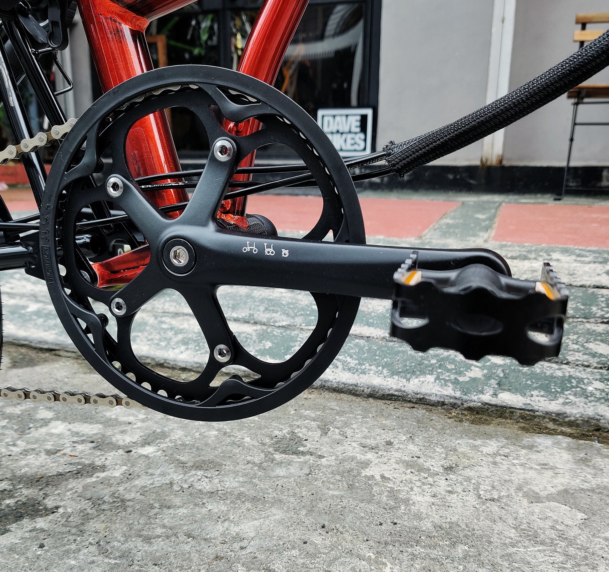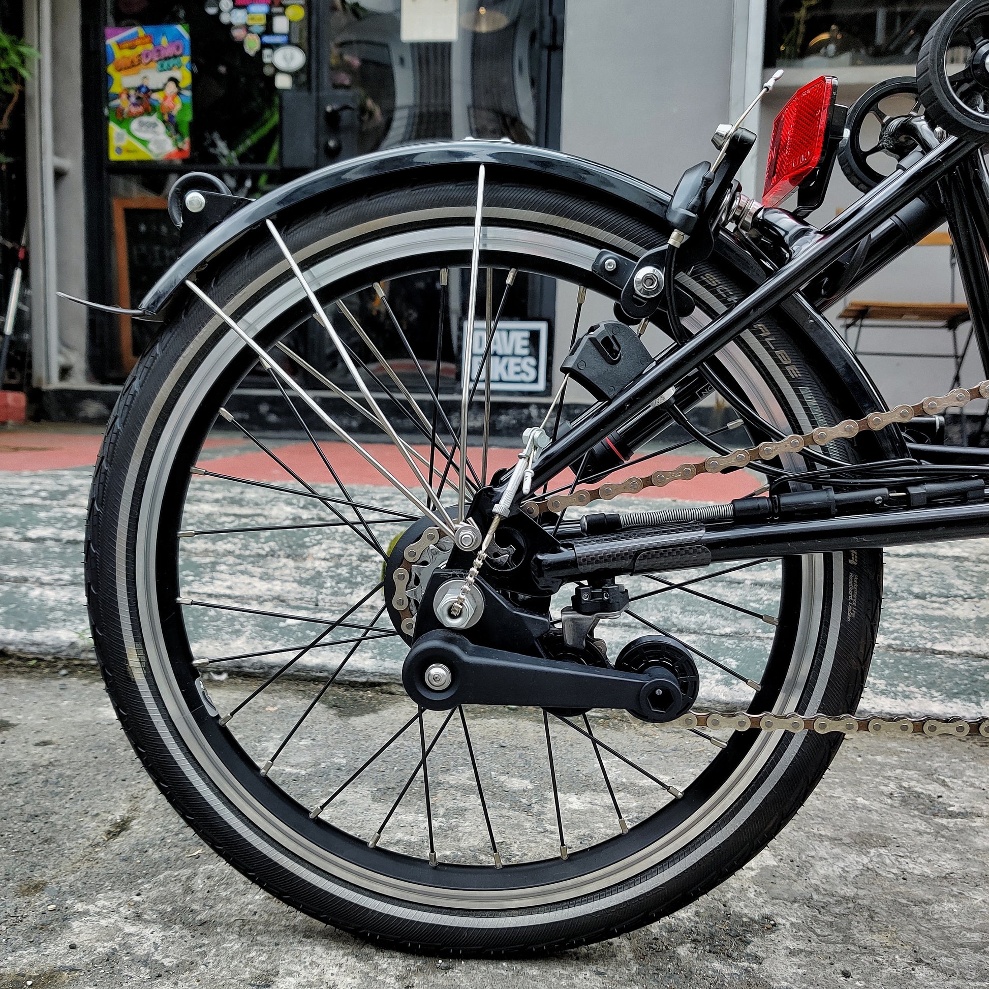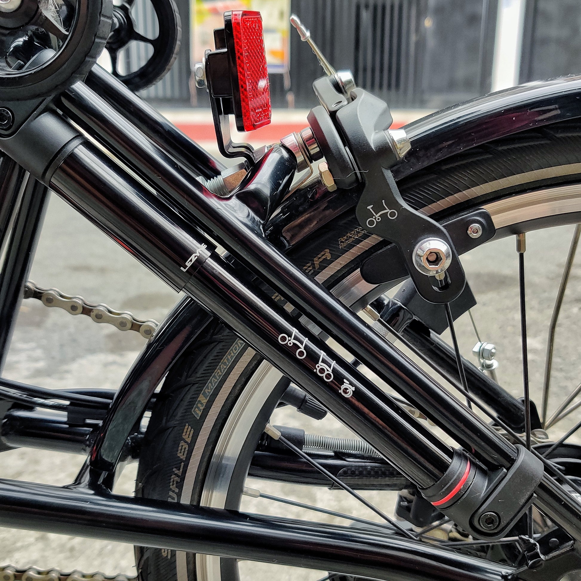 - Pedals: Brompton folding left hand and non-folding right-hand pedals