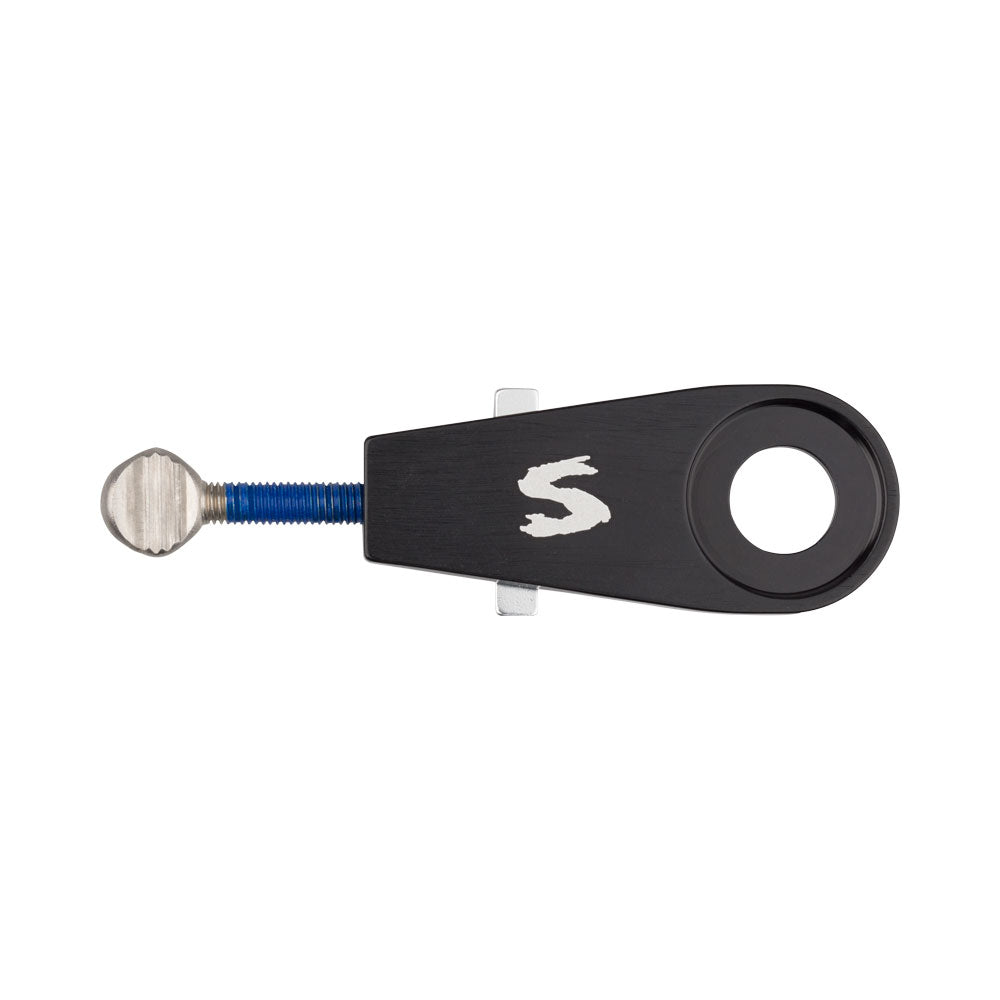 Like some of our other chain tensioning devices, Snuggnut keeps your rear wheel from slipping forward in the dropout under the pedal load from your powerful gams. It’s specifically designed for our bikes featuring 12mm horizontal, vertical-slotted dropouts, and is particularly suited for singlespeed application. Snuggnut is CNC-machined for durability and good looks, and shares many design features found on Tuggnut and Hurdy Gurdy.